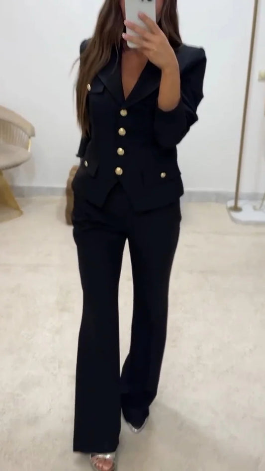 Beyond Raw Lapel Button-down Top + Pants Temperament Commuter Suit